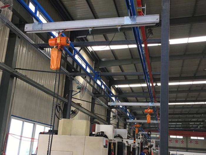 高强度轨道及可拓展桁架结构设计,使之整体不需要额外增加工字钢悬挂,从而减少整体自重,起重能力可达2000kg,经济环保。特别是桁架结构的优化可使间隔达9m,大幅减少立柱或支持件数量,减低空间干涉,使厂房布局美观简洁。