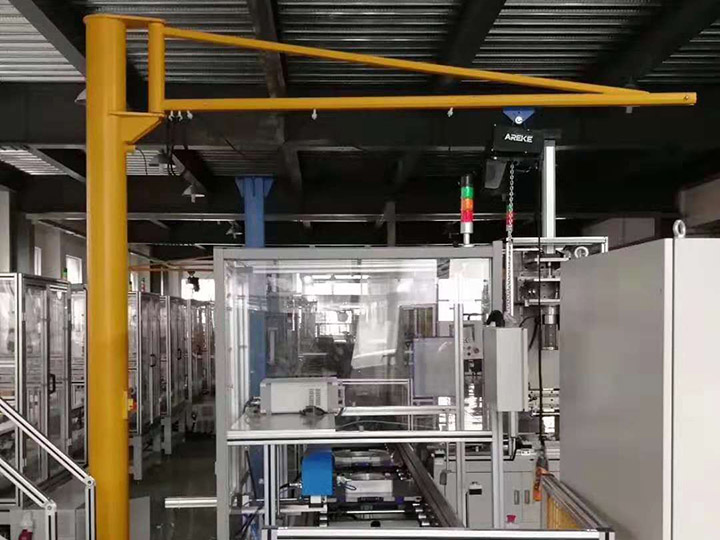 移动式悬臂吊更具灵活机动、适应性广等特点,是高效自动生产线上必备的单独应急吊装设备,有了它能确保生产线畅通无阻。